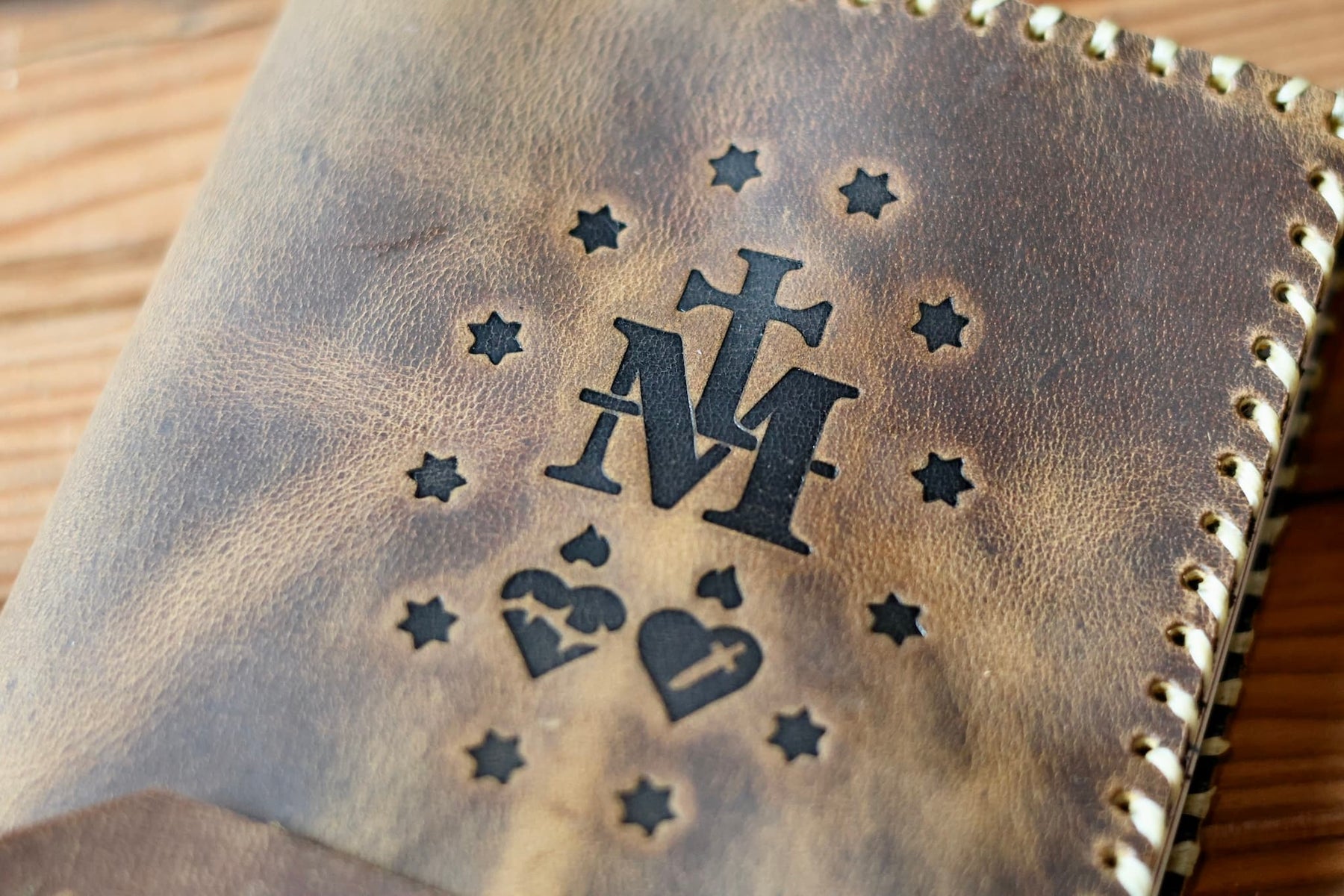 Carrying the symbols from the Miraculous Medal revealed to St. Catherine Labouré, this breviary cover places your daily prayer beneath Our Lady’s gentle care. Every cover is crafted from full-grain leather, ready to endure years of quiet mornings, late-night Offices, and steady fidelity to the Hours.